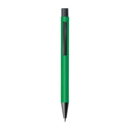 Plastic ballpoint pen with blue-writing refill, coloured shaft and metal clip.