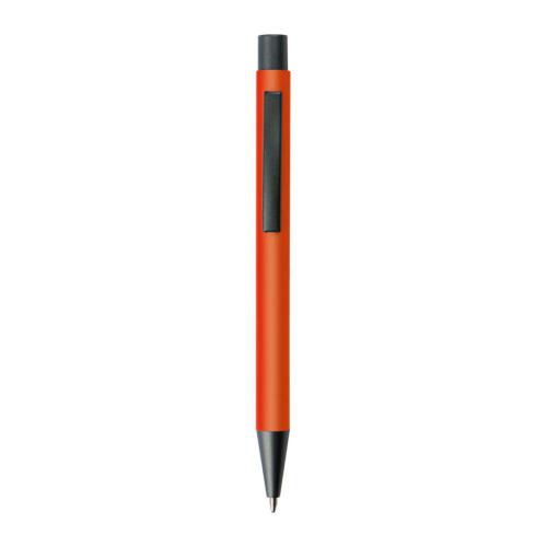 Plastic ballpoint pen with blue-writing refill, coloured shaft and metal clip.