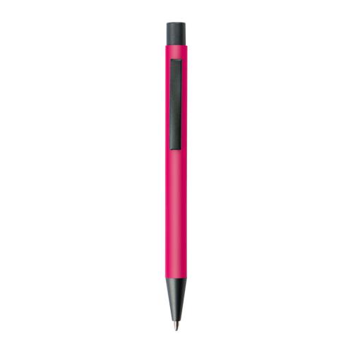 Plastic ballpoint pen with blue-writing refill, coloured shaft and metal clip.