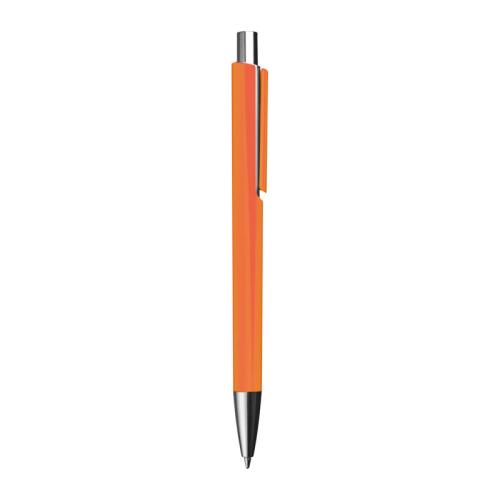Colourful plastic ball pen with a jumbo blue-writing refill and silver applications.