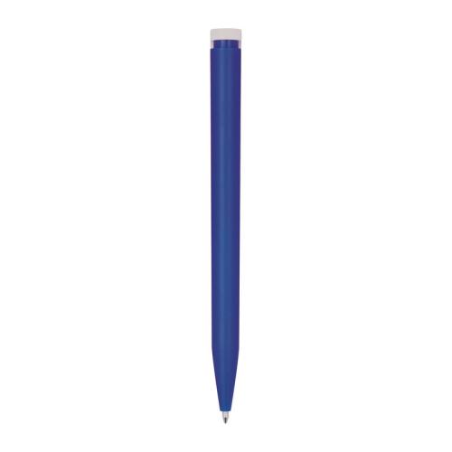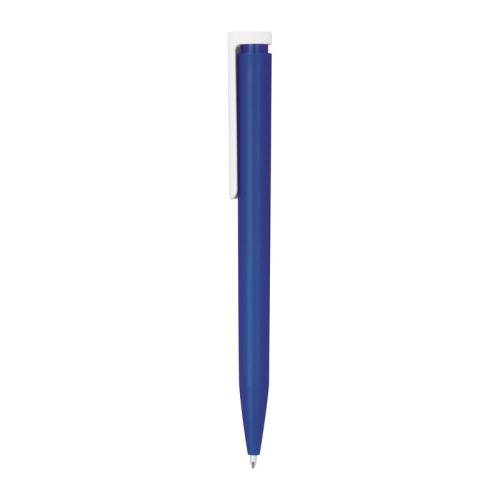 Plastic ball pen with blue writing refill and extraordinary clip.