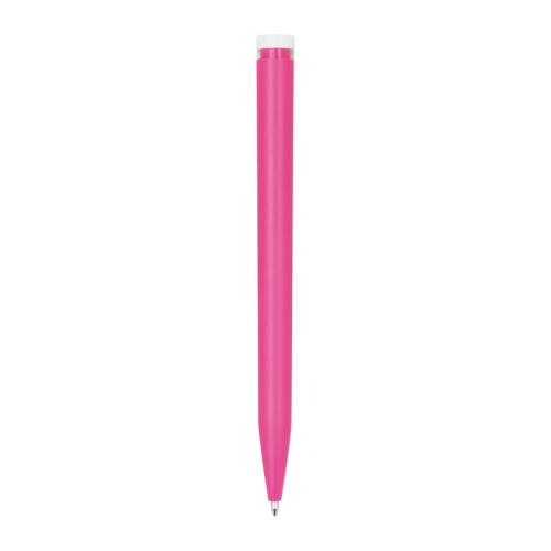 Plastic ball pen with blue writing refill and extraordinary clip.