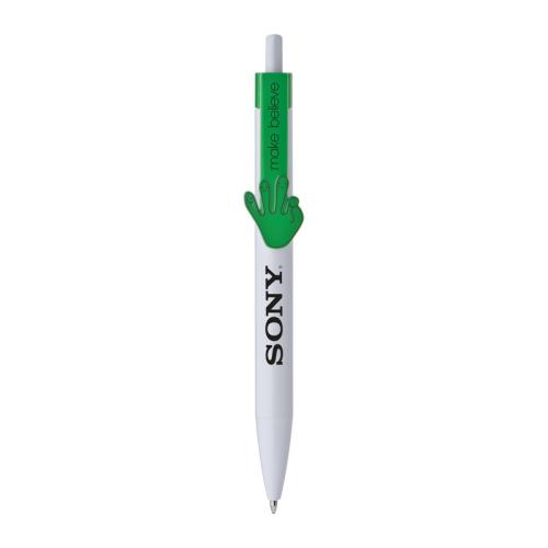 Plastic ball pen with blue-writing refill and eye-catching hand clips in various designs, with the perfect space for expressive messages that will stay in mind. Print on the shaft 4.5 x 1.2 cm (allover print on request.) Print on the clip max. 2.5 x 0.7 cm.