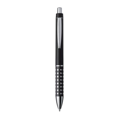 Plastic ball pen with sparkling dots grip zone and large blue refill.