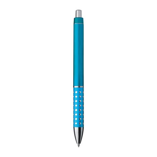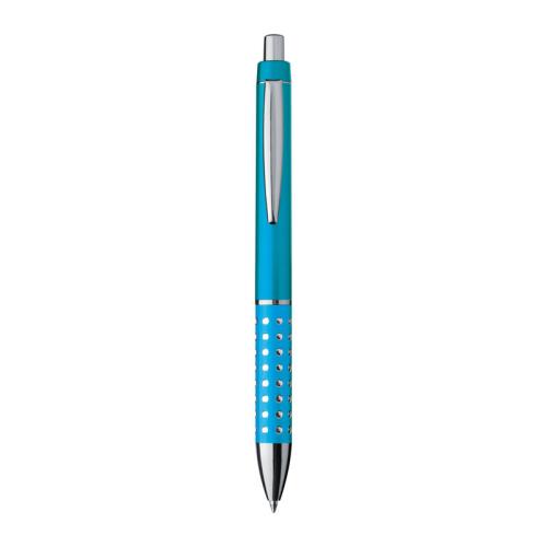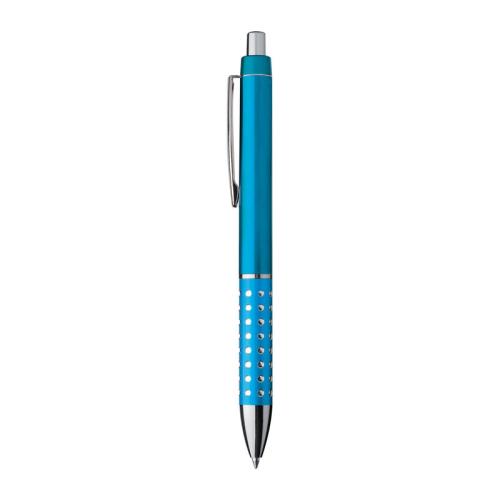 Plastic ball pen with sparkling dots grip zone and large blue refill.