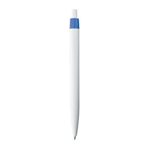 Trendy push-button ball pen with blue-writing refill. The white of the barrel highlights the colour of the clip.