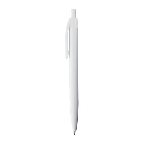 Trendy push-button ball pen with blue-writing refill. The white of the barrel highlights the colour of the clip.