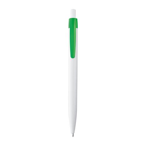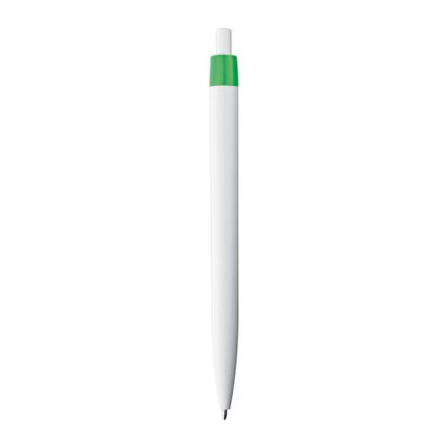 Trendy push-button ball pen with blue-writing refill. The white of the barrel highlights the colour of the clip.