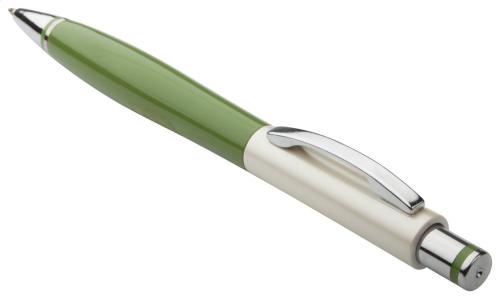 Plastic ballpoint pen with metal clip, chrome tip and pearl white-colour finish. With blue refill.