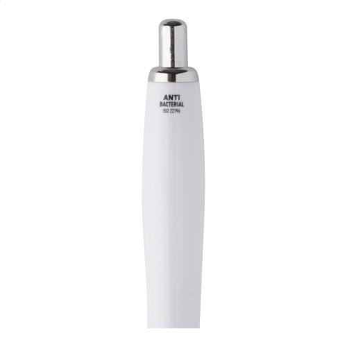 Plastic ballpoint pen with antibacterial barrel and chrome parts. Contains nano silver additive preventing bacterial growth on the body of the pen. With push mechanism and blue refill. ISO 22196:2011 compliant.