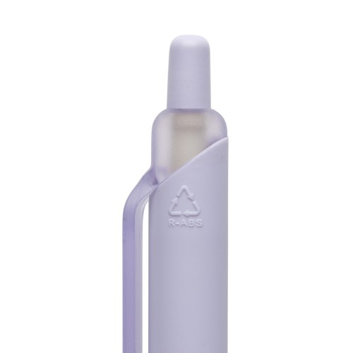 The Tide GRS Certified RABS Pen Smooth Touch stands out with its unique design, reminiscent of a pen wearing a tie when you look closely at the clip and barrel. Crafted from 91% recycled ABS, this pen combines durability with style. It features a smooth rubberised silicone grip around the barrel for added comfort, ensuring a premium writing experience. The frosted coating on the plunger, clip, and tip adds a sleek touch, while the blue ink flows smoothly for up to 1200 metres. The pen operates with a click mechanism for easy use.