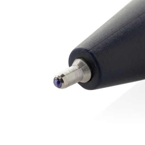 The Vibe GRS Certified R-ABS Pen features ultra-glide ink with low viscosity, ensuring an exceptionally smooth writing experience. The ink flows effortlessly, delivering fluid, luxurious strokes with every use. With a writing length of 800 meters. The ink is blue, and the pen is made with 55% recycled R-ABS, certified for sustainability.