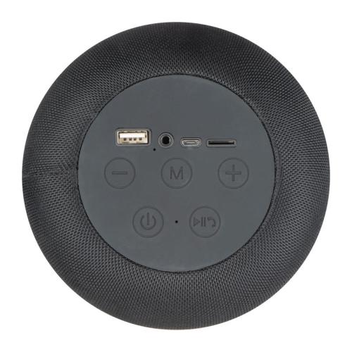 High quality Bluetooth pillar speaker (3.7V, BT name: CrisMa) with AUX/USB port, SD card slot, built-in microphone and built-in battery rechargeable via micro USB cable. Your logo will be laser engraved on the rubberized top.
