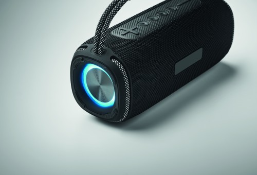 2x10 W wireless portable speaker with 2400 mAh rechargeable battery. LED changing colours light on both sides of the speaker. Includes AUX, USB, TF ports. Playing time approx. 5 hours.