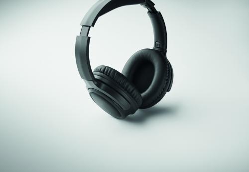 Active noise cancelling (ANC) 5.3 wireless foldable headphones in ABS. Hands free function and built-in microphone. Playing time approx. 17 hours. Includes Type-C charging cable. Rechargeable 200 mAh Li-ION battery. All presented in PU pouch. Operating range: 10 m.