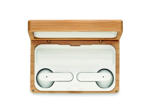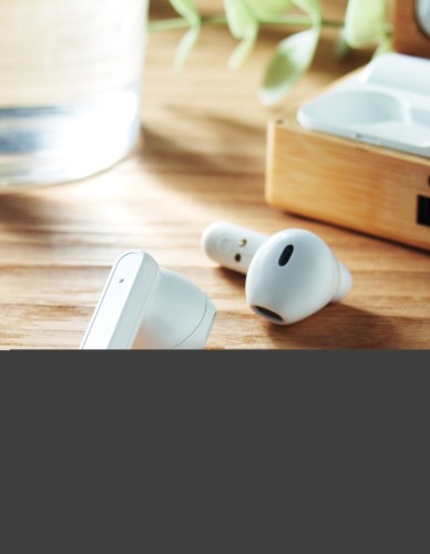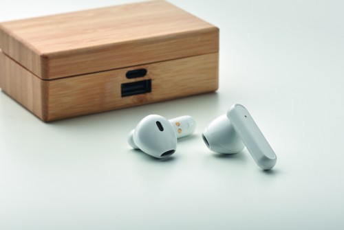 TWS earbuds in bamboo case