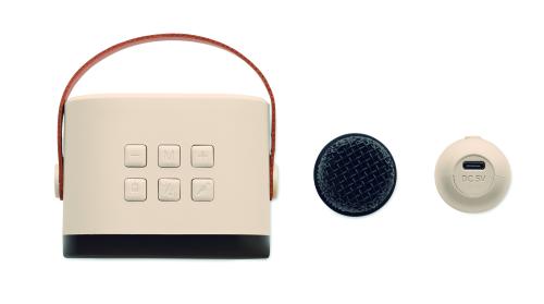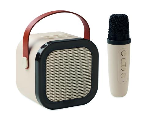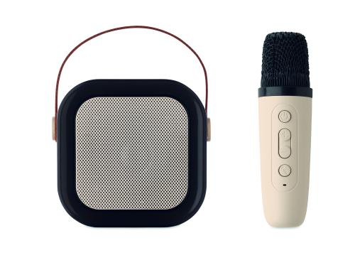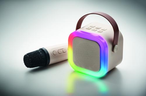 Karaoke set including 5W wireless speaker with LED changing colours light in recycled ABS with PU handle and microphone. Built-In 800 mAh battery speaker and 400 mAh battery microphone. Playing time approx. 3h.