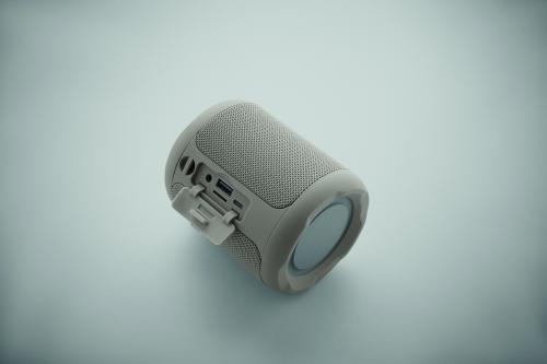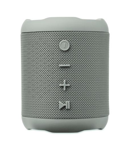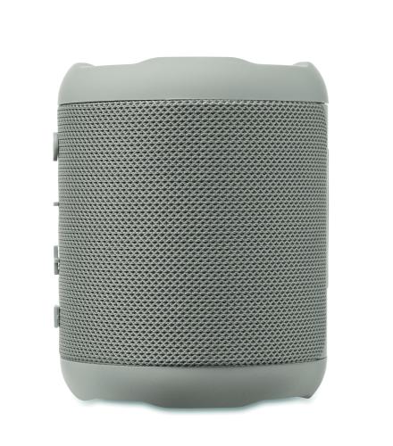 5.0 wireless speaker in ABS with RPET fabric. 1 Rechargeable Li-ION 800 mAh battery included. Includes an SD card port and an AUX/ USB cable. Output data: 5W, 3 Ohm and 5V. Playing time approx. 3h.