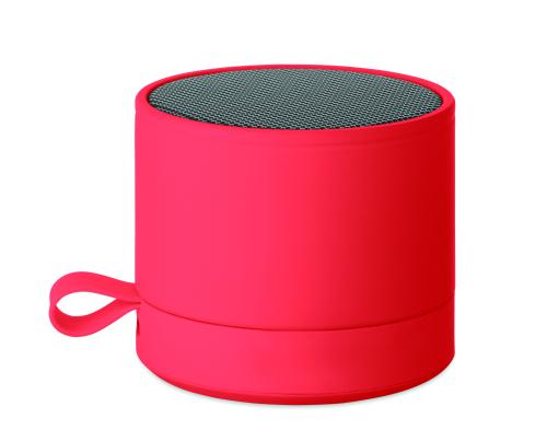 Wireless 5.1 speaker with metal body and rubber finish. Features 3W mono sound. Includes rechargeable and replaceable 500mAh battery. Compact and modern design.