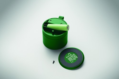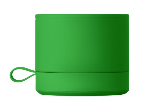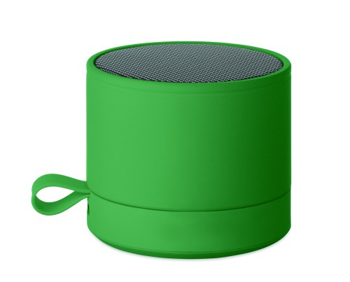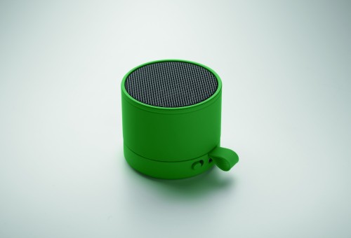 Wireless 5.1 speaker with metal body and rubber finish. Features 3W mono sound. Includes rechargeable and replaceable 500mAh battery. Compact and modern design.