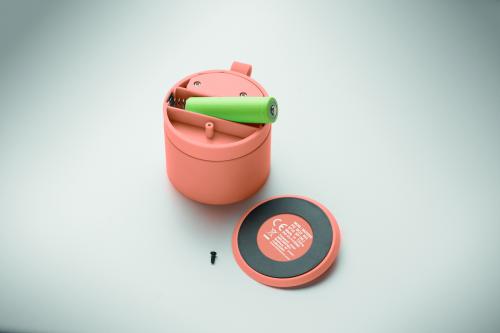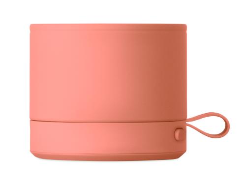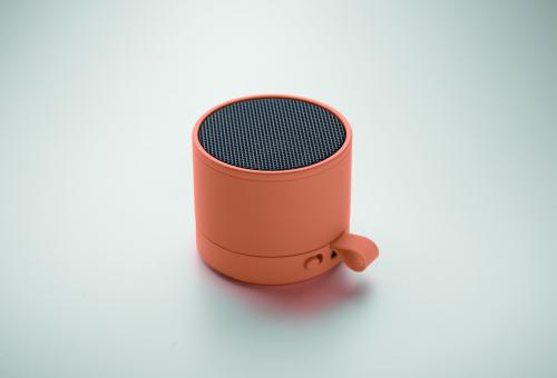 Wireless 5.1 speaker with metal body and rubber finish. Features 3W mono sound. Includes rechargeable and replaceable 500mAh battery. Compact and modern design.