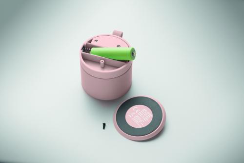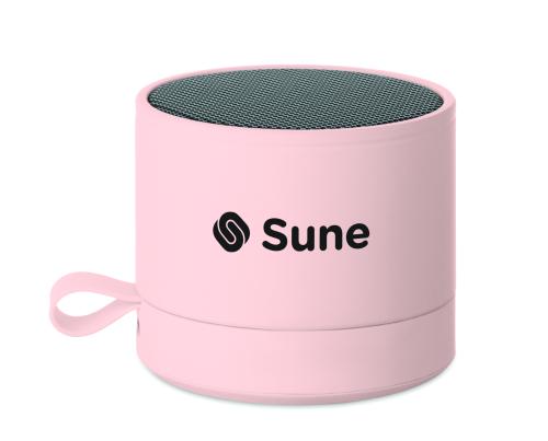 Wireless 5.1 speaker with metal body and rubber finish. Features 3W mono sound. Includes rechargeable and replaceable 500mAh battery. Compact and modern design.
