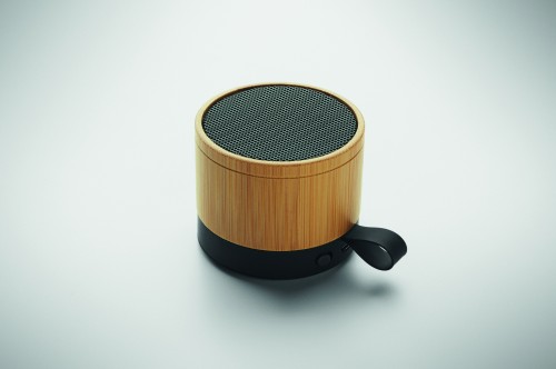 Wireless 5.1 speaker with bamboo casing and ABS base. Features 3W mono sound. Includes rechargeable and replaceable 500mAh battery. Compact and modern design.