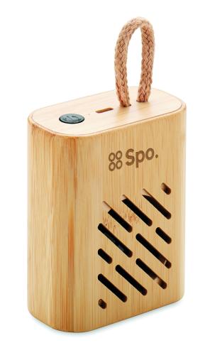 5.0 wireless speaker with bamboo casing with LED light indication. 1 Rechargeable Li-Pol 300 mAh battery included. Output data: 3W, 3 Ohm and 5V. Playing time approx. 4h (70% volume). Type C. Bamboo is a natural product, there may be slight variations in colour and size per item, which can affect the final decoration outcome.