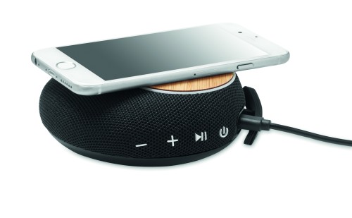 5.1 wireless speaker in ABS case and bamboo on top. It also has a built- in 10W wireless charger to charge your smartphone and 4000 mAh power bank. Output DC 9V/1.1A. Bamboo is a natural product, there may be slight variations in colour and size per item, which can affect the final decoration outcome.