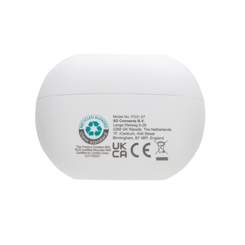 Commute, work or travel in silence with these hybrid ANC and ENC earbuds. The ANC function makes sure outside noise is reduced for optimal concentration. The ENC functions filters away external sounds when making a phone call to have a more clear calling experience. The earbuds and charging case are made with RCS (Recycled Claim Standard) certified recycled ABS. Total recycled content: 66% based on total item weight. RCS certification ensures a completely certified supply chain of the recycled materials. The earbuds come in a compact 200 mAh charging case that allows you to charge and take your earbuds wherever you go. The earbuds use BT 5.3 for automatic pairing without any hassle and a stable connection. The earbuds have a 30 mAh battery that allows a play time of up to 5 hours (with ANC) and 7 hours (without ANC) and can be re-charged in 1.5 hours in the charging case. The wireless distance range is up to 10 meters. ANC degree: 23 DB. Including 3 size eartips.