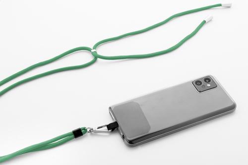 Length adjustable, RPET cord mobile holder lanyard with metal carabiner and phone insert.