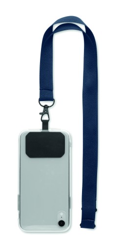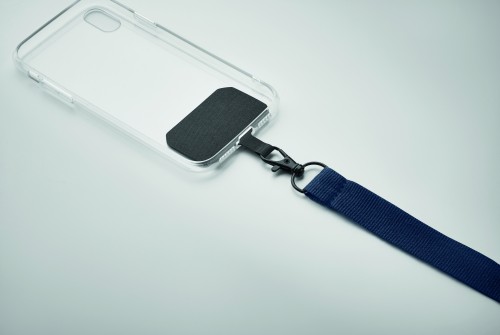 Lanyard in polyester with phone cord holder and safety buckle. 2 cm.
