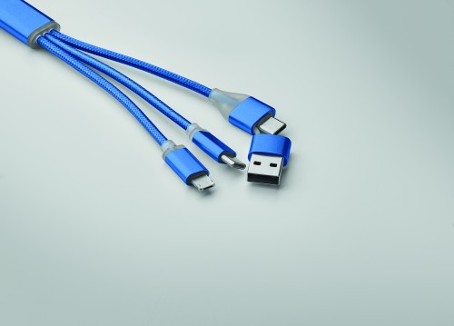 Key ring with charging cable with input: 2-in-1 type-C & type-A and micro-B (2 in 1 pin) and Type C output.