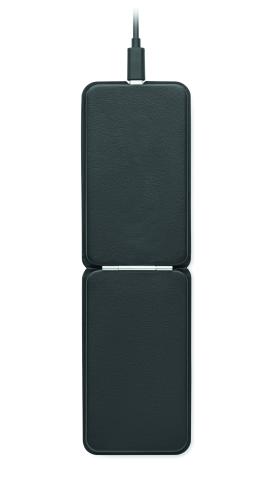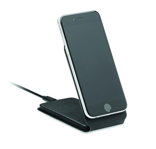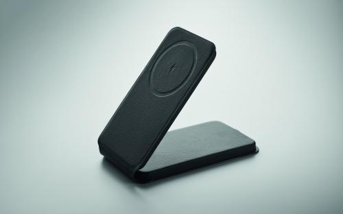 Foldable wireless charger 15W with magnetic phone stand in 58% recycled polyester and 42% PU.