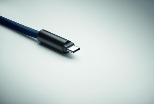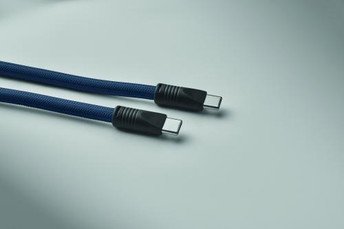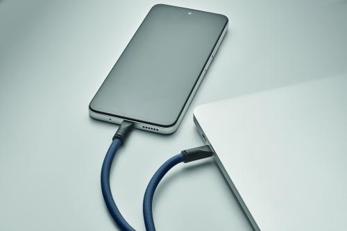 Cord lanyard with 60W charging and data transfer cable type-C to type-C in RPET with phone cord holder and key clip.