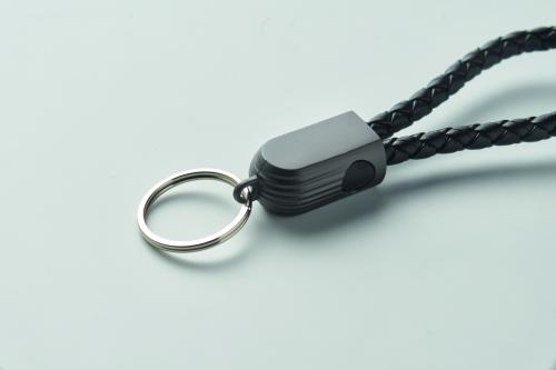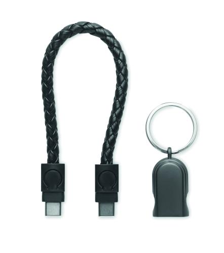 Key ring loop with charging cable 60W type-C to type-C in PU with zinc alloy braided detail.
