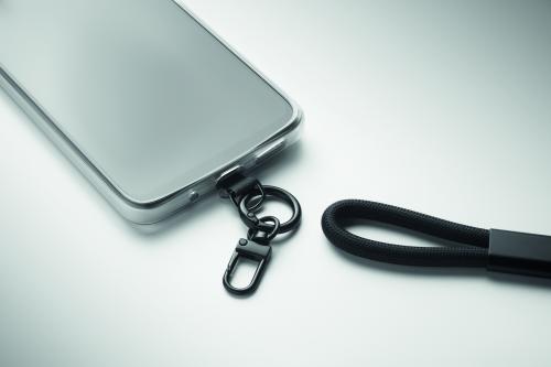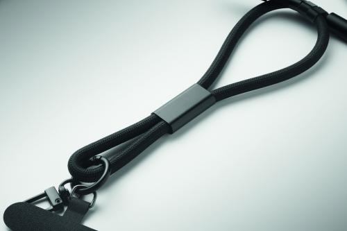 60W wristband charging and data cable type-C to type-C in RPET with phone cord holder and key clip.