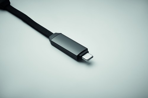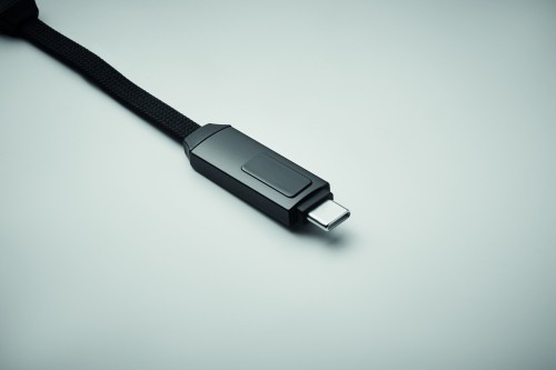 60W charging and data cable with keyring. Type-C to type-C with LED screen with charging power display feature. Magnet closure.