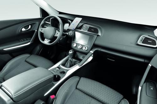 Flexible car mount magnetic wireless charger 15W with phone holder and hook and loop mount. Compatible with iPhone® 12 and newer. Including additional magnetic metal ring to support charging of other non-magnetic wireless chargeable phones.