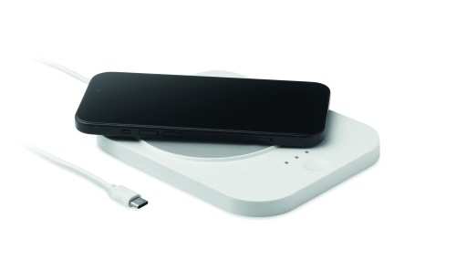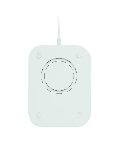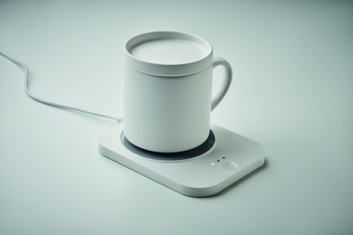 2 in 1 wireless charger 15W and mug warmer device in ABS. With ceramic mug with lid. Capacity: 250 ml. Keep drinks warm to a max of 50ºC. 3 temperature settings with touch screen. USB connection cable. Output: DC 9V/1.67A (15W).