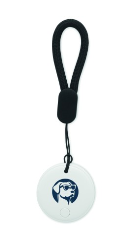 Smart Apple Find My / Google Find Hub locator device with strap and IPX5 waterproof rating.