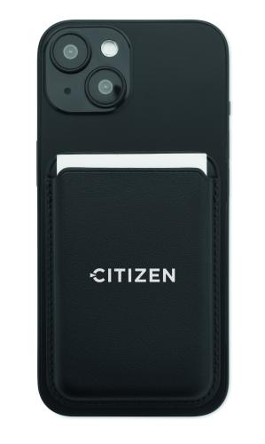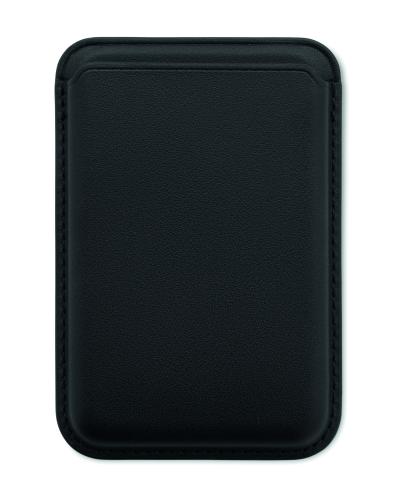 Magnetic PU leather credit card holder (for 3 cards). It includes an additional metal ring.