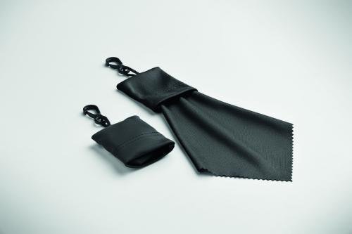 RPET cleaning cloth with self material pouch with PP plastic hanging hook.