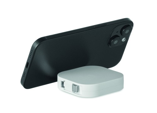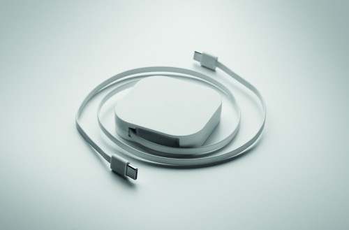 100W retractable charging and data cable. Includes phone holder functionality. PVC cable with ABS case for power and data transfer (480Mbps). Type-C to Type-C connection.