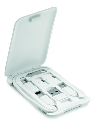 Multi-functional cable kit. Including data transfer and power transmission cables: Type-C to Type-C cable, Type-C to Type-A adapter. Type-C to Micro USB adapter. SIM ejector pin/eject tool. Nano and Micro SIM storage slot. Phone stand.