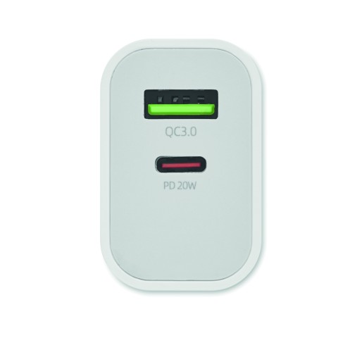 EU 2-pole wall adapter/charger. Supports quick charging technology (18W). 2 ports Type A and 1 Type C. Supports Quick Charge 3.0/Power Delivery technology. Not suitable for UK use.