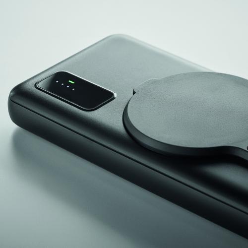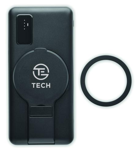Magnetic wireless powerbank. 10000 mAh. ABS. PD 20W. Outputs: USB-C up to 20W and USB-A up to 18W. Wireless charging up to 15W. Input: USB-C and Micro-B. 2 USB-A and 1 USB-C ports. USB-C to USB-C cable (3A), USB-A adapter and magnetic ring included.
