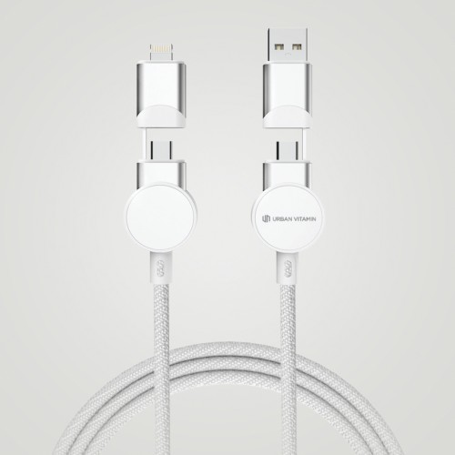 Always charge using the fastest charging speed possible with the Oakland fast charging cable. Made with certified recycled materials. The case is made out of 100% RCS certified recycled TPE plastic and the wire from 100% recycled TPE inner material and 100% recycled PET outer layer. RCS (Recycled Claim Standard) is a standard to verify the recycled content of a product throughout the whole supply chain. RCS is the standard that is used when a part of the item has been made from recycled materials. The 120 cm cable has 5 different connectors: USB C in, USB A in, type C out, IOS out and micro USB out. This also allows you to use the cable with type C output devices that are included in the newer generation of phones and macbook computers. The cable also has a USB A output input option so it can charge any device from any output source. Max current type C to lightning 18W. Max current type C to type C 45W. Urban Vitamin items are made without PVC and packed in plastic reduced packaging.