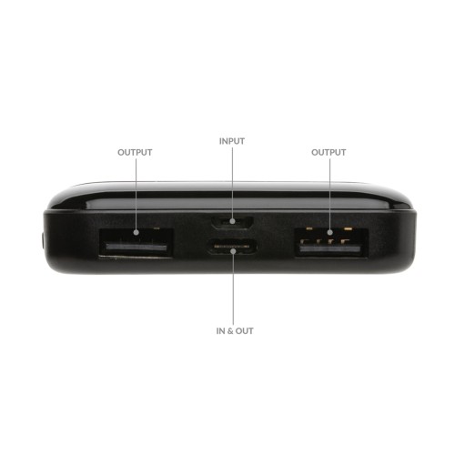 5.000 mAh pocket size powerbank with a case made from RCS certified recycled ABS plastic. RCS (Recycled Claim Standard) is a standard to verify the recycled content of a product throughout the whole supply chain. Total recycled content: 30 % based on total item weight. When fully charged the powerbank provides you with enough energy to re-charge your mobile phone up to two times. The powerbank contains a long lasting grade A 5.000 mAh high-density lithium polymer battery. The power indicators will indicate the remaining energy level so you always know when to re-charge. Micro USB Input 5V/2A; Type-C Input 5V/2.4A; USB output 5V/2.4A, Type C output:5V/2A Item and accessories PVC free. Including RCS certified recycled TPE charging cable. Packed in FSC® mix packaging.
