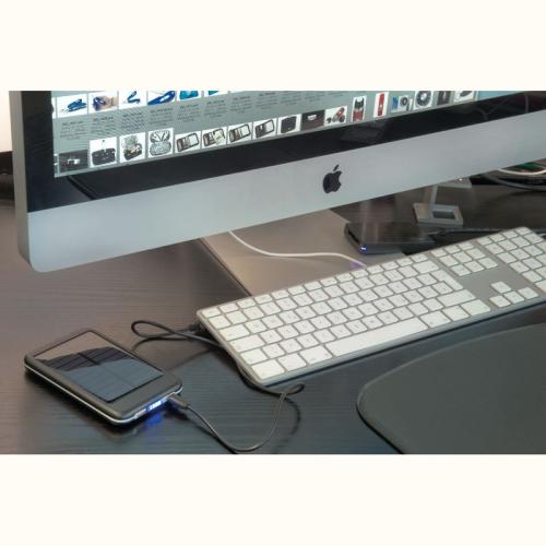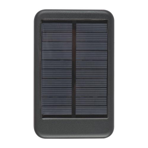 Solar powerbank (equipped with 20 solar panels) made of metal with 4,000 mAh capacity and USB charging cable. So you can charge your smartphone or tablet on the go and without a power outlet.